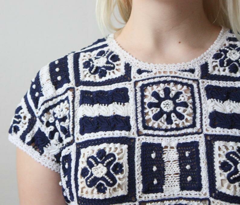 Винтажный вязаный топ. Интересное сочетание мотивов крючком. | Вяжем крючком с Ольгой Ингрией | Яндекс Дзен
