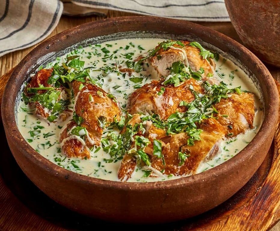 Чкмерули. Очень вкусное блюдо грузинской кухни. Нам оно нравится даже больше чем цыпленок табака. За счет соуса (и предварительного вымачивания) мясо получается очень сочным и нежным. Вам потребуется: 1 небольшой цыпленок 2-3 зубчика чеснока 200мл молока молотый перец вода и соль для маринада растительное масло Как готовить: 1. Цыпленка положить в глубокую миску и залить рассолом (на 1 стакан воды, 1 ст.л. соли) так чтоб он был полностью покрыт. Оставить на 1 час. 2....