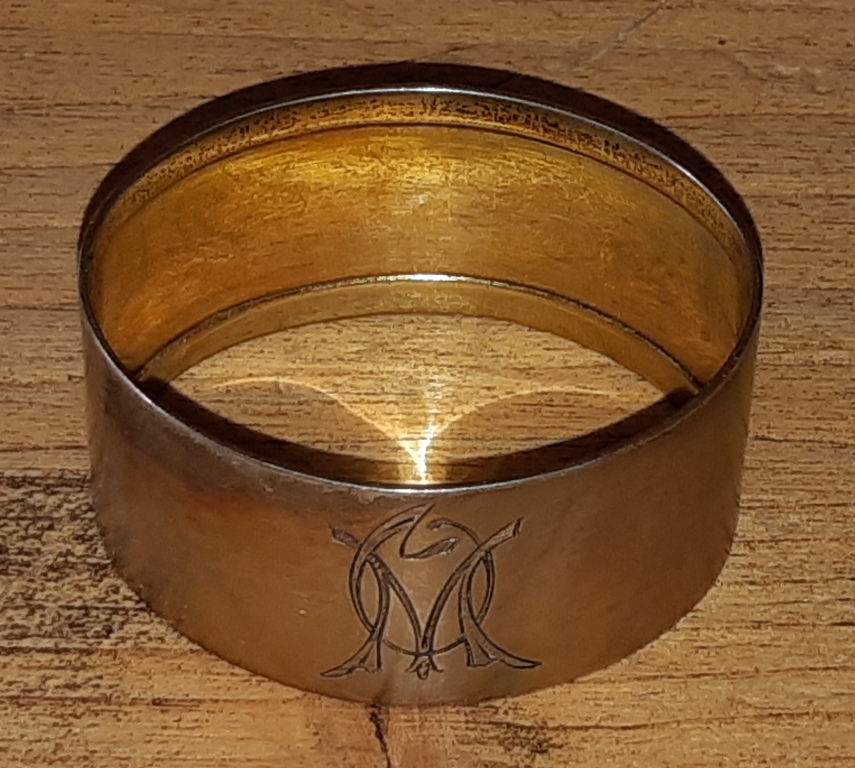 Кольцо с монограммой МО для салфеток. Серебро 84 проба. Позолота. Российская Империя Клеймо