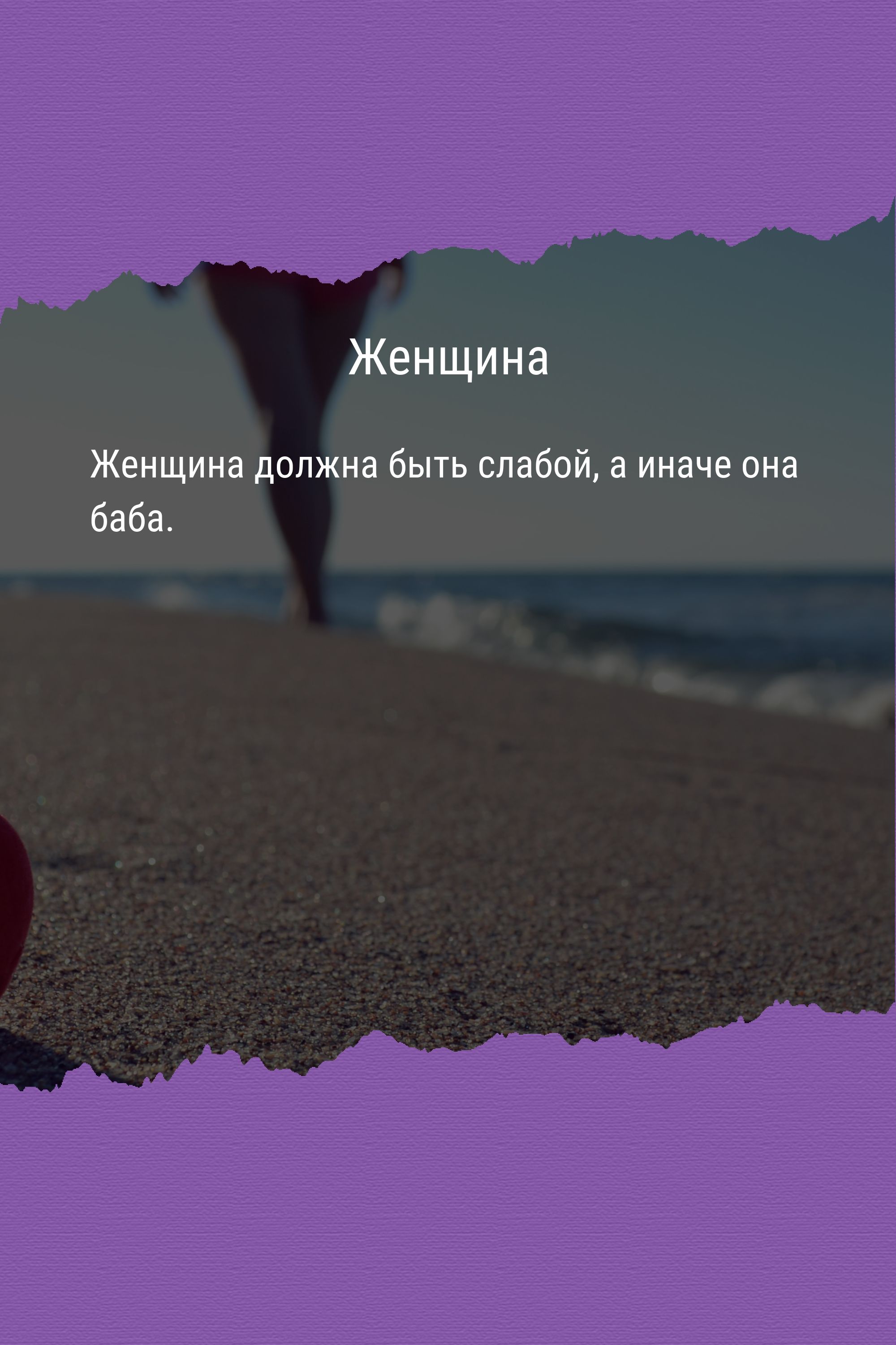 Цитата про «Женщин» — Женщина должна быть слабой, а иначе она баба.