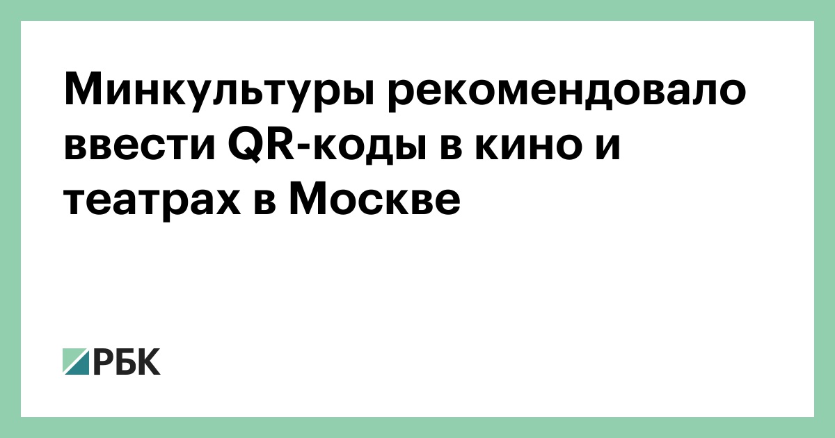 25-6-21-Минкультуры рекомендовало ввести QR-коды в кино и театрах в Москве Приказ Минкультуры относится к федеральным учреждениям культуры в Москве. Ранее об аналогичных рекомендациях объявляла мэрия