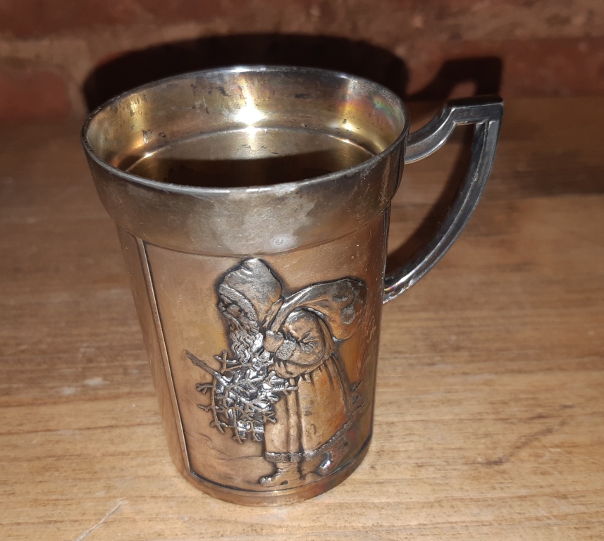 Кружка Святой Николаус с монограммой EW. Серебрение. Европа. Кон 19 нач. 20 века. Клеймо.
