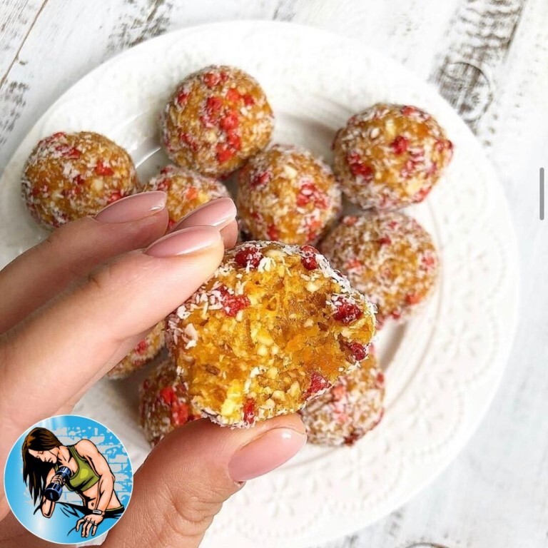 ФИТНЕС - КОНФЕТЫ Ингредиенты: - 165 гр миндаля - 165 гр кураги - 20 гр кокосовой стружки - сублимированная клубника Приготовление: 1. Замочите курагу минут на 10 в кипятке, хорошо промойте и пробейте в чаше блендером до состояния пюре. 2. Отдельно пробейте миндаль до состояния крошки. По желанию вы можете оставить массу с небольшими кусочками миндаля. 3. Пробивайте курагу и миндаль отдельно, так блендеру будет проще справиться с задачей. 4. Соедините курагу, миндаль ...