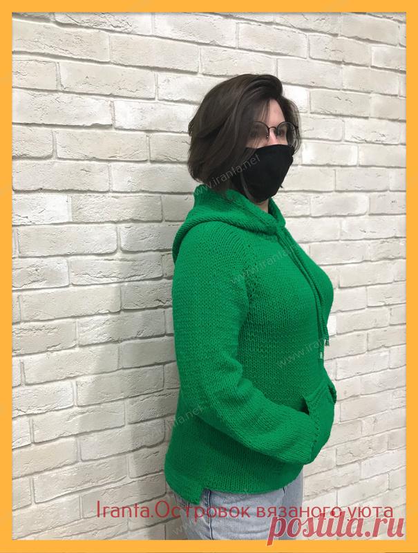 Худи с карманом-кенгуру и удлиненной спинкой спицами