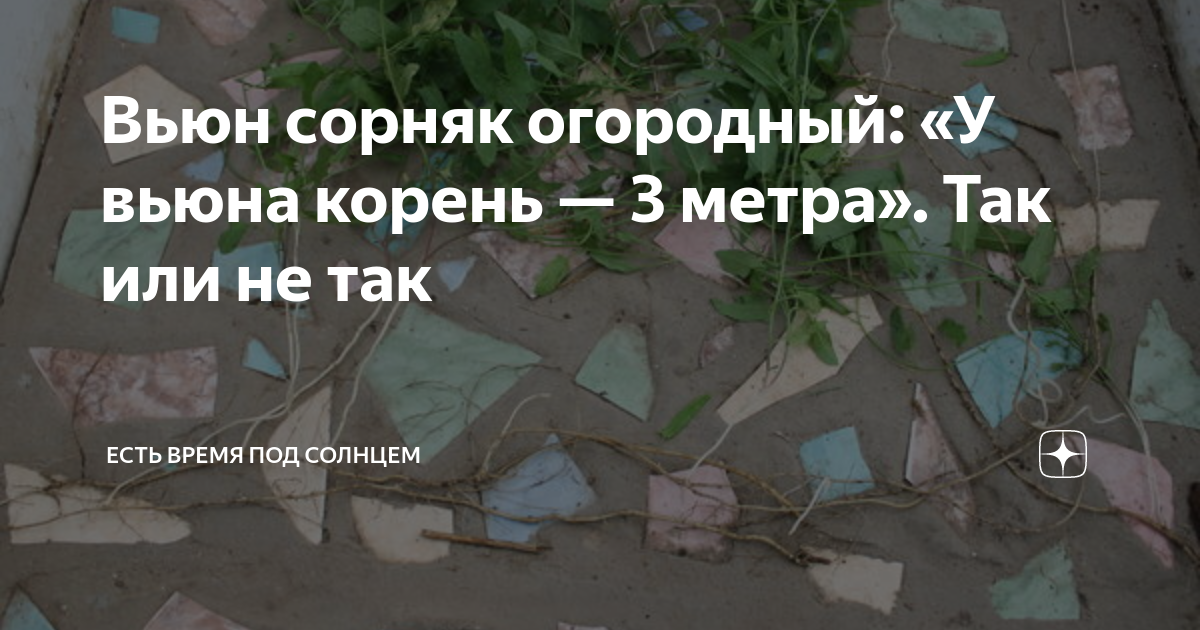 Вьюн сорняк огородный: «У вьюна корень — 3 метра». Так или не так После моей статьи осенью, в которой я рассказывала про свой опыт борьбы с сорняками, и в особенности с вьюном, пришло довольно много комментариев. Как положительных, так и критических. Но мне показались интересными особенно два отзыва. В одном, я прочитала такой совет: «Нельзя нарушать поверхность почвы, перекапывая ее, чтобы семена сорняков не выносить из земли на поверхность». Другими словами, этот читател...