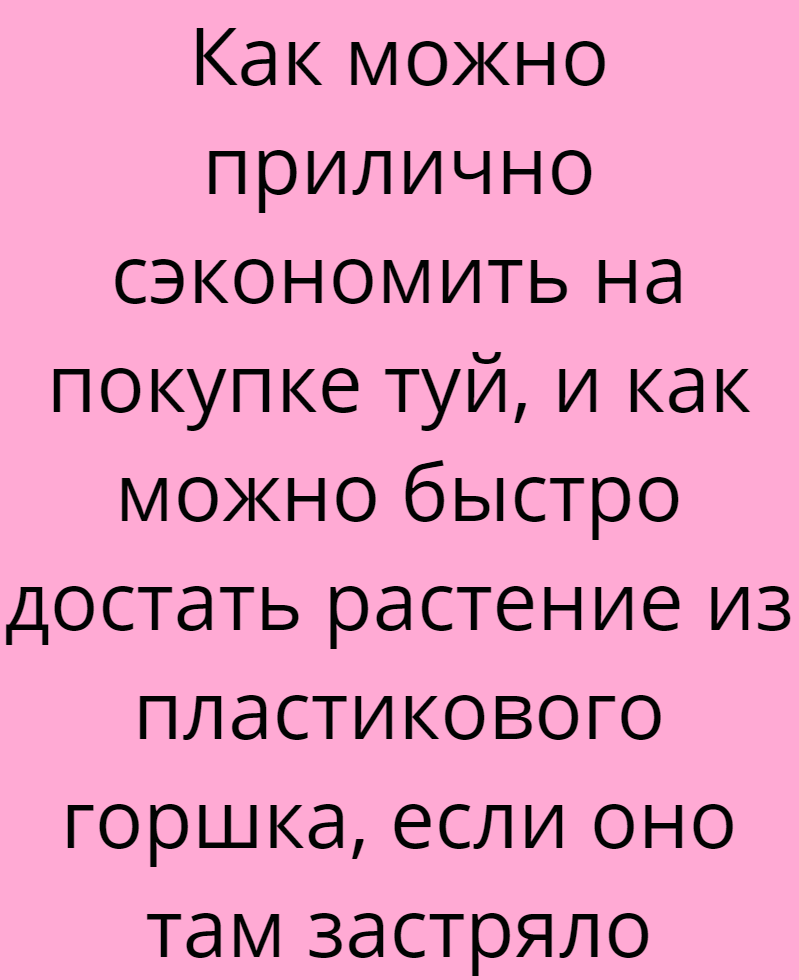 Как можно прилично сэкономить на покупке туй, и как можно быстро достать растение из пластикового горшка, если оно там застряло