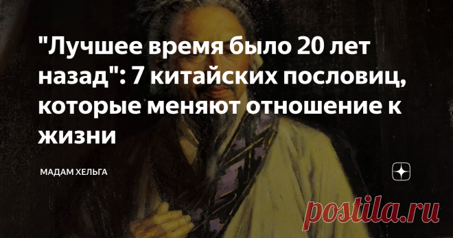 "Лучшее время было 20 лет назад": 7 китайских пословиц, которые меняют отношение к жизни Китайцы убежденные оптимисты и трудоголики, любят своих детей, свято чтут традиции своих предков и нацелены на завоевание всего мира. В общем, у нас есть чему у них поучиться. Мудрости много не бывает. О недостатках "Друга без изъяна не бывает. Будешь искать изъян - останешься без друга". У меня был знакомый, про которого говорили "ему везет на людей". И с родителями повезло, и с жен...