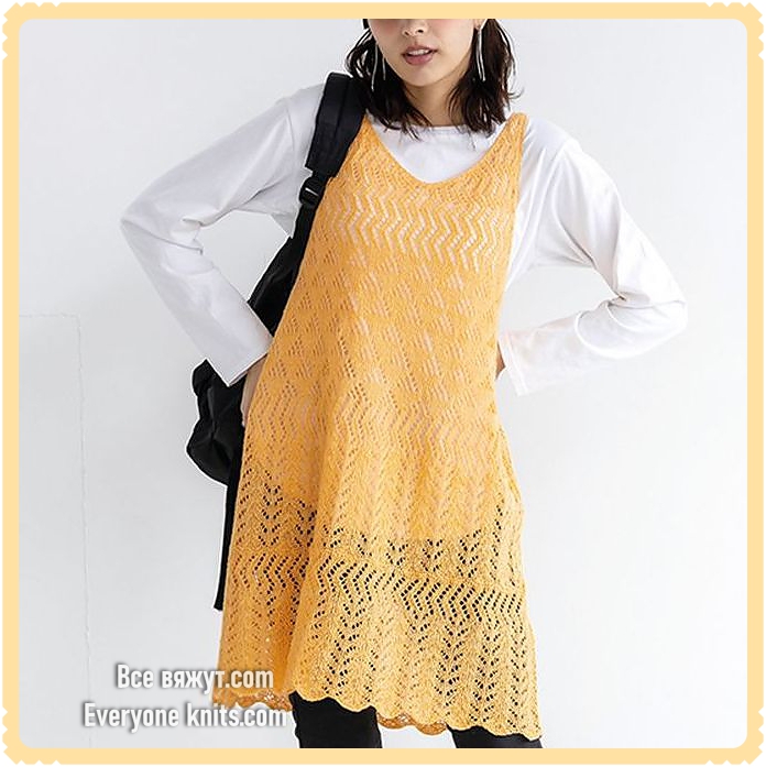 АЖУРНАЯ ТУНИКА А-СИЛУЭТА. Модель выполнена без рукавов на бретелях, с v-образным вырезом горловины.