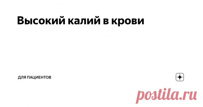 Высокий калий в крови Примерно 98% всего калия в нашем организме спрятаны внутри клеток. Благодаря такой разнице между калием внутри клетки и снаружи, наши клетки могут поддерживать на своей мембране электрический потенциал, без которого не будут работать мышцы и нервы. По этой же причине, если в нашей крови очень мало или наоборот очень много калия, то резко повышается риск опасных нарушений сердечного ритма. Сердце