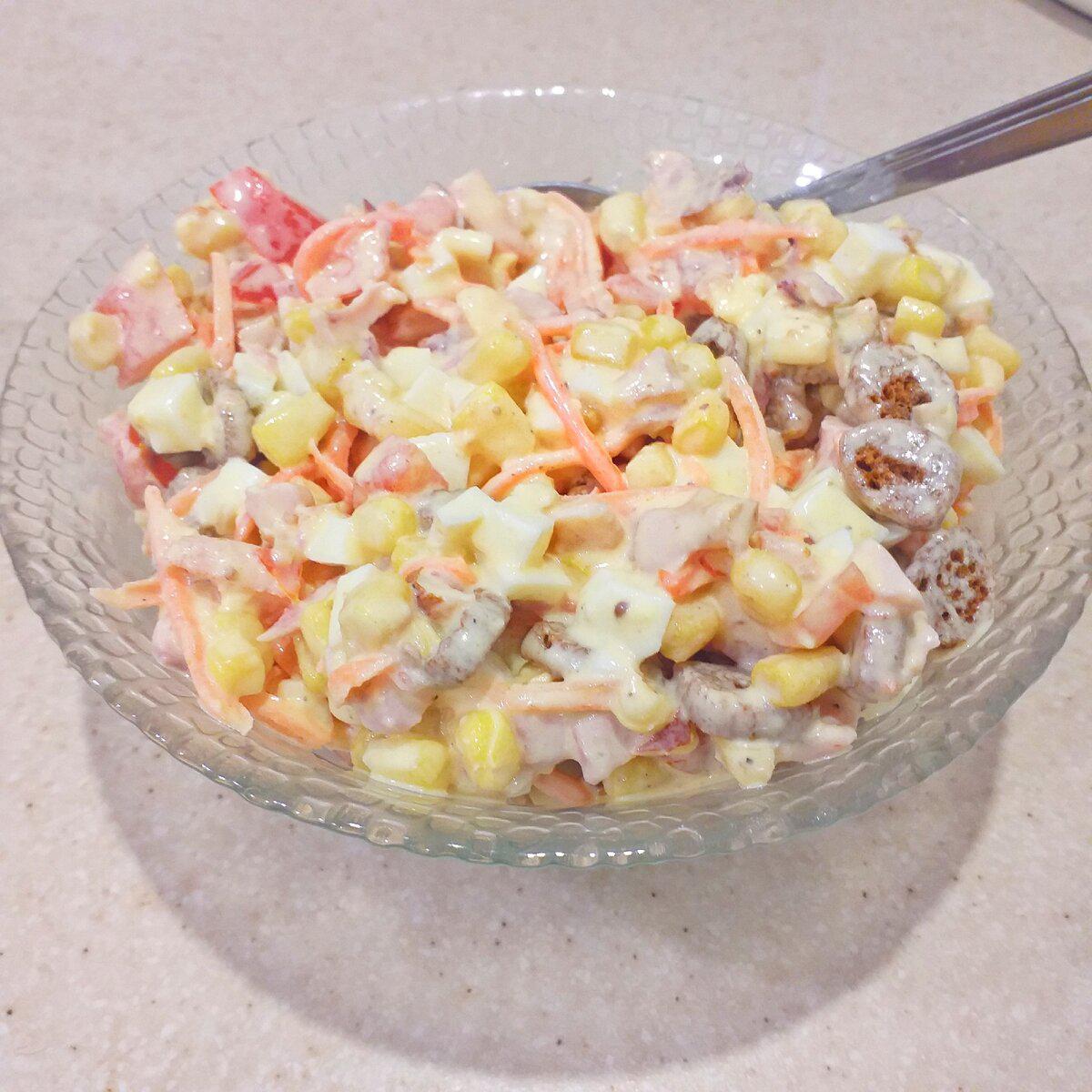 Салат с сухариками: идеальное сочетание ингредиентов Простой и очень вкусный салат. Готовлю за 15 минут. Нравится всем гостям. Рецепт нашла давно. Готовлю уже несколько лет. Салат пикантный и свежий одновременно. Подойдет к любому блюду. Варить нужно только яйца! Ингредиенты: 100 грамм копчёной курицы 1/2 банки кукурузы 3 яйца 1 крупный помидор 2 пачки сухариков 80 грамм корейской моркови Приготовление: 1. Яйца […] Читай дальше на сайте. Жми подробнее ➡