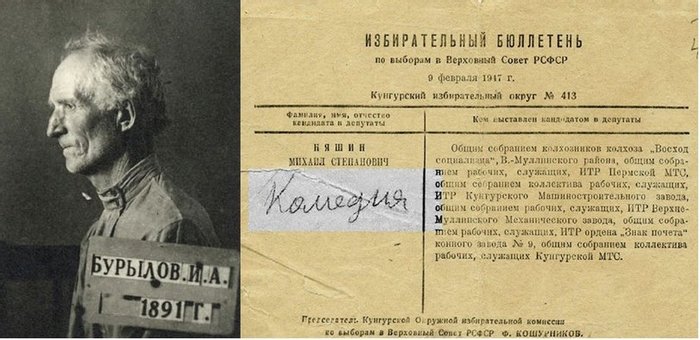Иван Бурылов, написавший слово "комедия" на бюллетене для голосования, получил 8 лет лагерей, 1949 год, СССР – Исторические документы, вырезки из газет, и все такое старое-старое