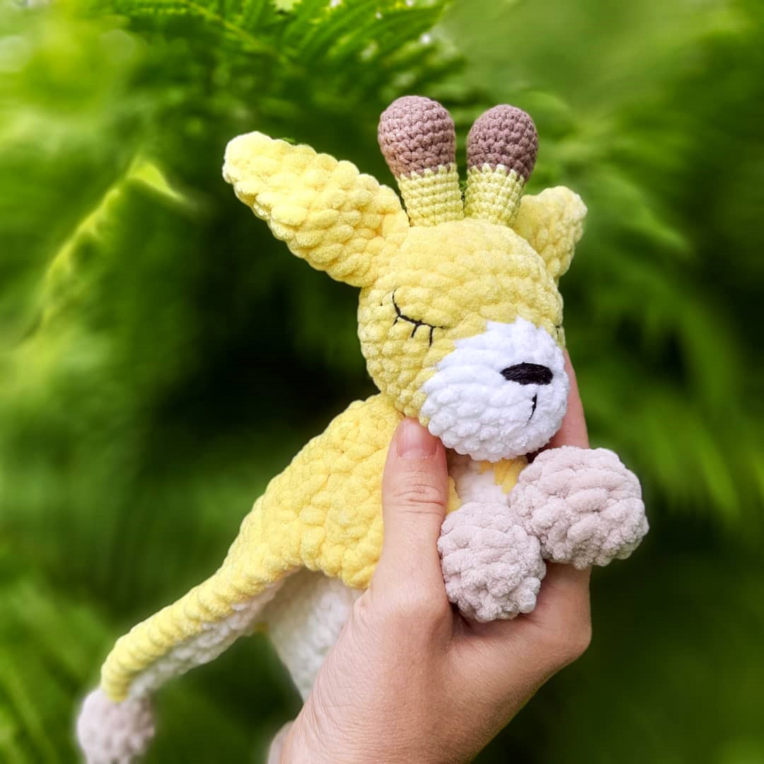 PDF Жирафик комфортер крючком. FREE crochet pattern; Аmigurumi animal patterns. Амигуруми схемы и описания на русском. Вязаные игрушки и поделки своими руками #amimore - жираф из плюшевой пряжи, плюшевый комфортер в виде жирафика.