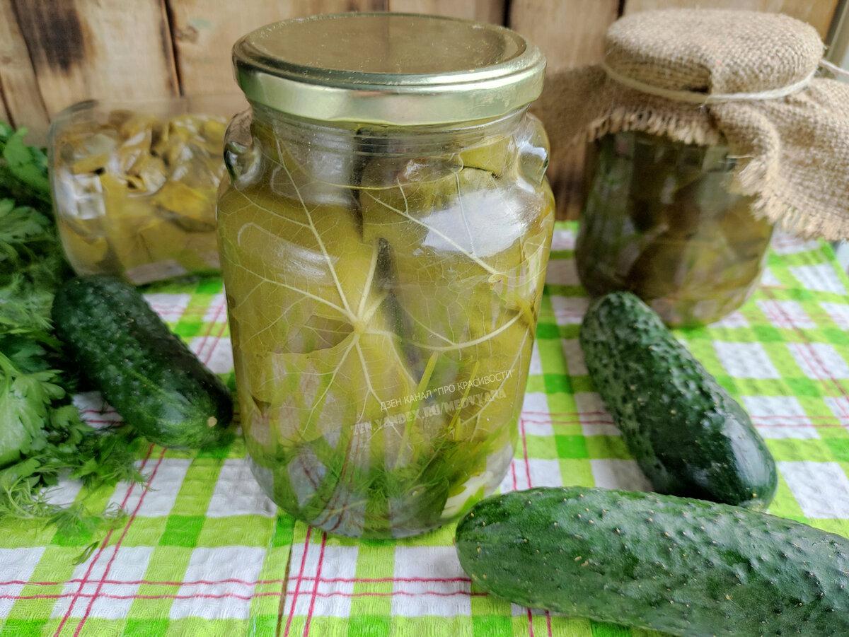 При заготовке огурцов всегда заворачиваю их в виноградные листья (показываю, что это дает)