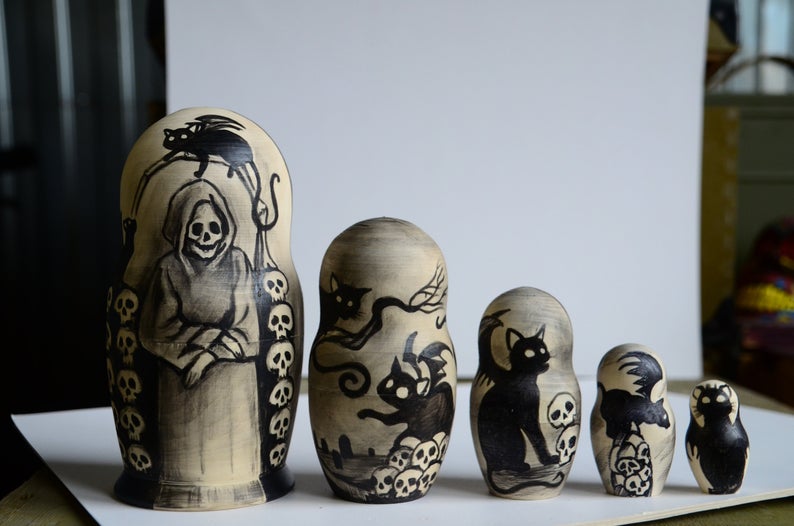 Мертвые Мрачные жнецы и кошки на кладбище русская Матрешка | Etsy