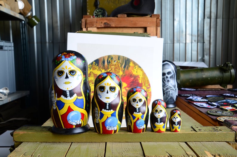Русская Матрешка Бабушка Деревянные куклы гнездования Череп | Etsy