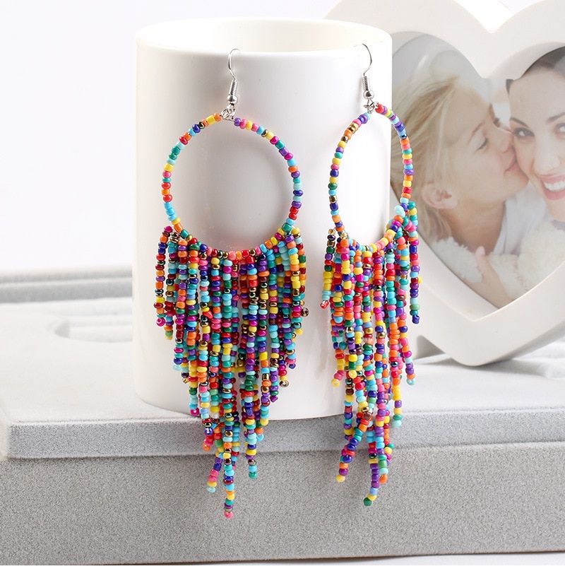 Женские богемные серьги Kymyad, длинные серьги ручной работы с разноцветными бусинами и кисточками, винтажное ювелирное изделие в стиле бохо, 2019|Серьги-подвески| | АлиЭкспресс