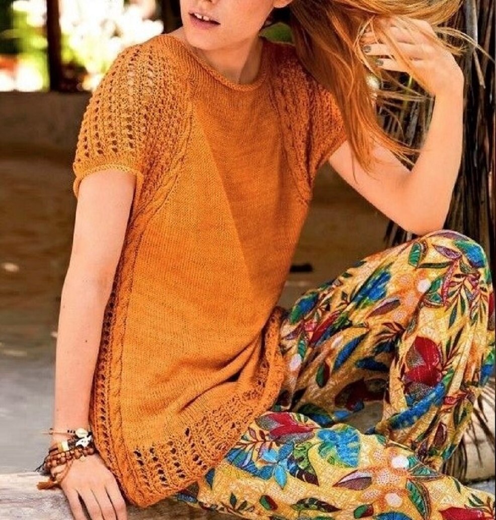 Красивые стильные джемперы с коротким рукавом для лета (с описанием вязания) ♥ Вязание спицами