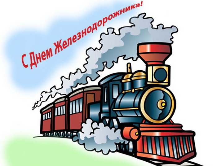 Открытка - Мультяшный поезд. С днём железнодорожника