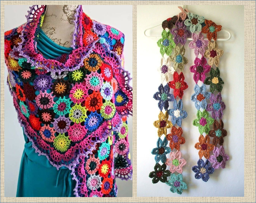 Цветные вязалочки палантины и шали крючком со схемами