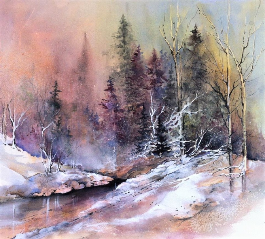 Хмурую землю стужа сковала... Холодная, но прекрасная акварель Ханны Якобсен / Hanna Jakobsen (Норвегия)