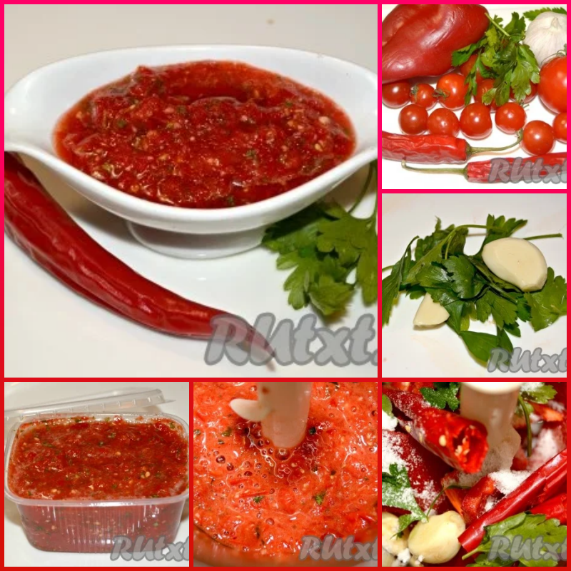 Как приготовить сырую аджику помидоры - 5 шт.; сладкий перец - 1 шт.; острый перец - 2 шт.; чеснок - 2 зубчика; зелень (кинза, или петрушка) - небольшой пучок; соль - 1 ч. л. (или по вкусу). Перцы лучше немного подвялить (разложив на столе на 2-3 дня), тогда аджика будет лучше храниться. Приготовить необходимые продукты. Перцы лучше немного подвялить (разложив на столе на 2-3 дня), тогда аджика будет лучше храниться. Помидоры Подробнее