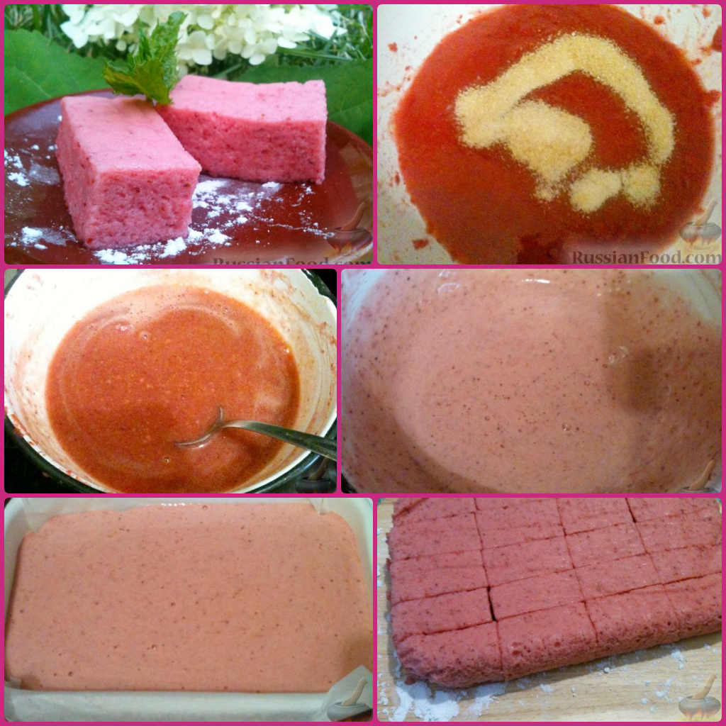 Десерт "Клубничные облака" Клубника (свежая или замороженная) - 200-250 г Сахар - 150 г Желатин быстрорастворимый - 15 г Сахарная пудра - 1-2 ст. ложки