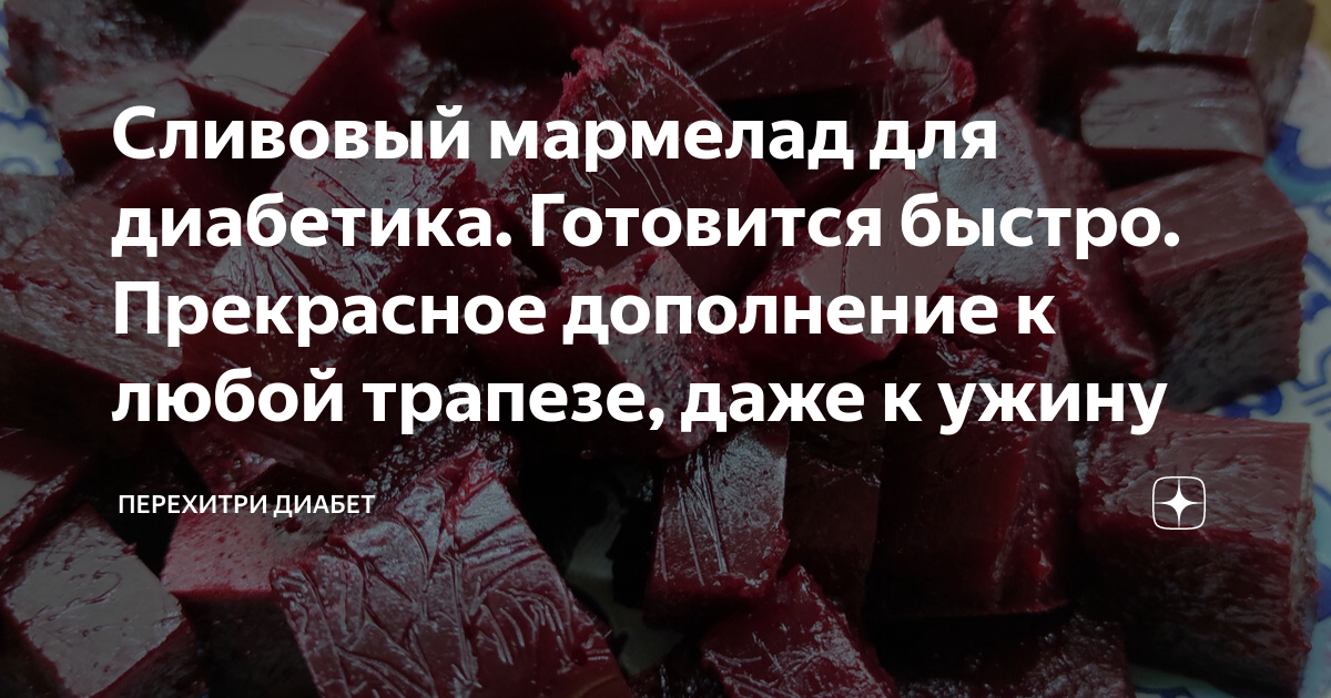 Сливовый мармелад для диабетика. Готовится быстро. Прекрасное дополнение к любой трапезе, даже к ужину Я сладкоежка, постоянно ем сладости. Но при всем при том я разумный человек, имеющий диагноз Диабет второго типа. Как совместить эти, казалось бы, несовместимые понятия? Очень просто! Нужно готовить десерты, которые дадут усладу вкусу сладкоежки и не навредят диабетику. Одним из таких десертов является сливовый мармелад. Я готовлю его часто, он заменяет не только конфетки...