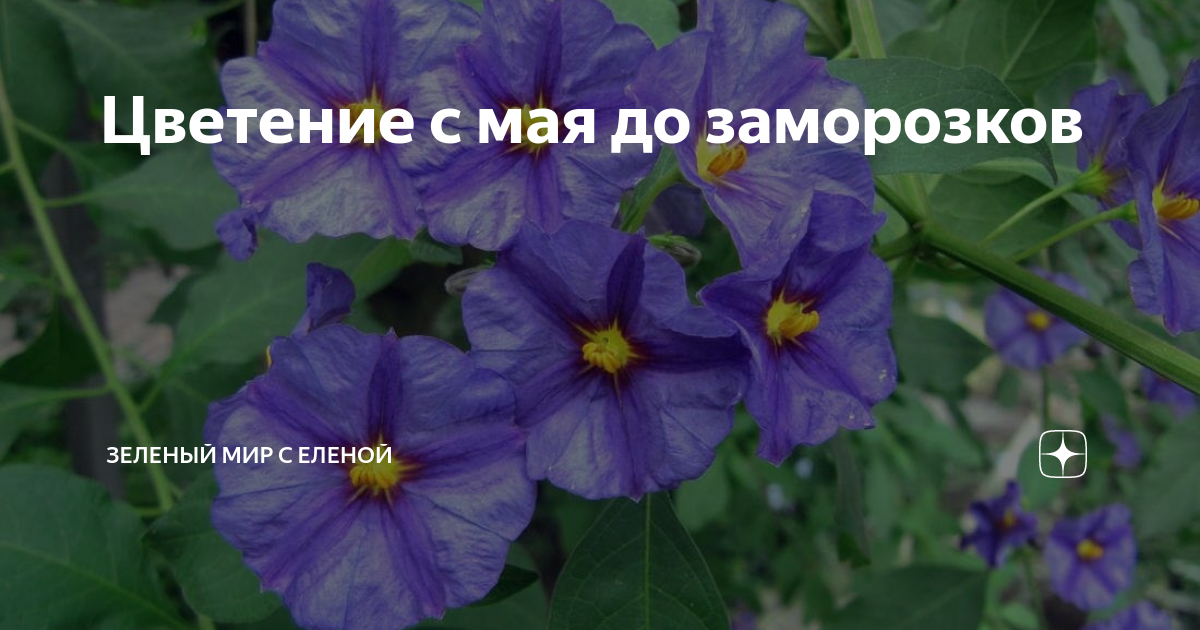 Цветение с мая до заморозков Очень необычное растение, которое цветет с мая и до самых заморозков. В природных условиях его можно увидеть в Южной Америке, где оно вырастает в форме кустарника до трех метров высотой. В нашей стране мы растим его в открытом грунте только в летний период, так как растение теплолюбивое и не выносит заморозков. Зимой растение храним в подвале, погребе, либо растим его как горшечное. Наверняка многие слышали о картофельном дереве, хотя к картофе...