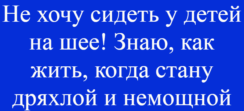 Не хочу сидеть у детей на шее! Знаю, как жить, когда стану дряхлой и немощной