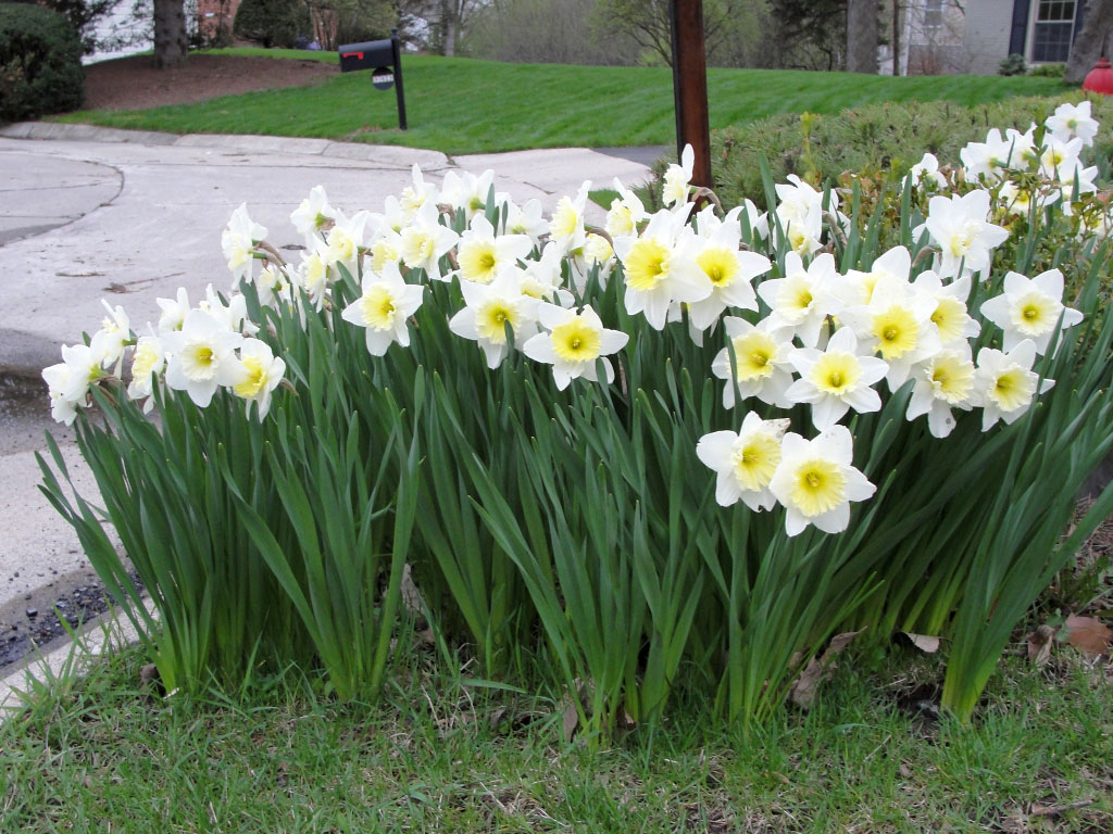 Многолетний садовый цветок Нарцисс (Narcissus). Луковичный травянистый многолетник. Луковица округло-яйцевидная, диаметром 2-5 см. Цветонос безлистный высотой от 15 до 50 см. Цветки поникающие или прямостоячие, диаметром 2-10 см, белые, желтые, кремовые, розовые, оранжевые или двухцветные, различной конфигурации, с приятным ароматом. Цветет в апреле - мае.