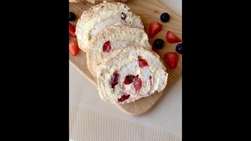 Запись на стене 🍥 МЕРЕНГОВЫЙ РУЛЕТ. - Ингредиенты: Корж: белки 5 шт., сахар 200 гр., соль щепотка. ⠀ Крем: сливочный сыр 300 гр., сливочное масло 100 гр., сахарная пудра 80-100 гр. ⠀ Начинка: У меня клубника и вишня. - Как приготовить: См. видео 👇🏻 Отправляем выпекаться в разогретую духовку до 120 градусов на 30-40 минут. ▫▫ ...