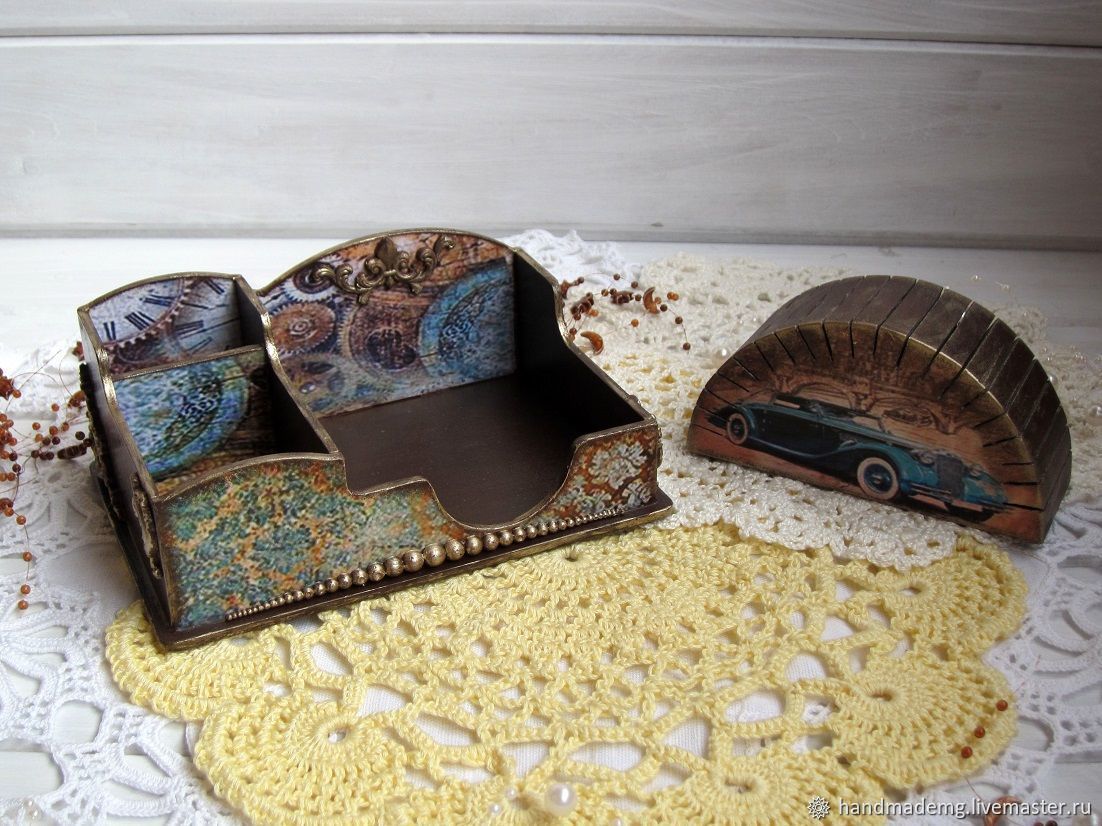 Набор выполнен в одном стиле, поможет организовать Ваше рабочее пространство на письменном столе, украсит рабочий, а может быть домашний кабинет, придаст индивидуальности и уюта.