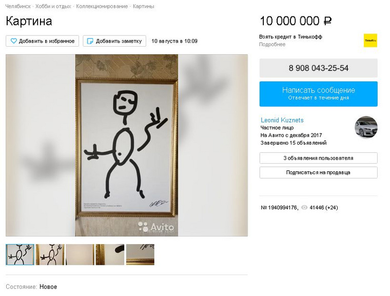 Челябинец за 10 млн рублей продает картину с аукциона «Сотбис». Скрин