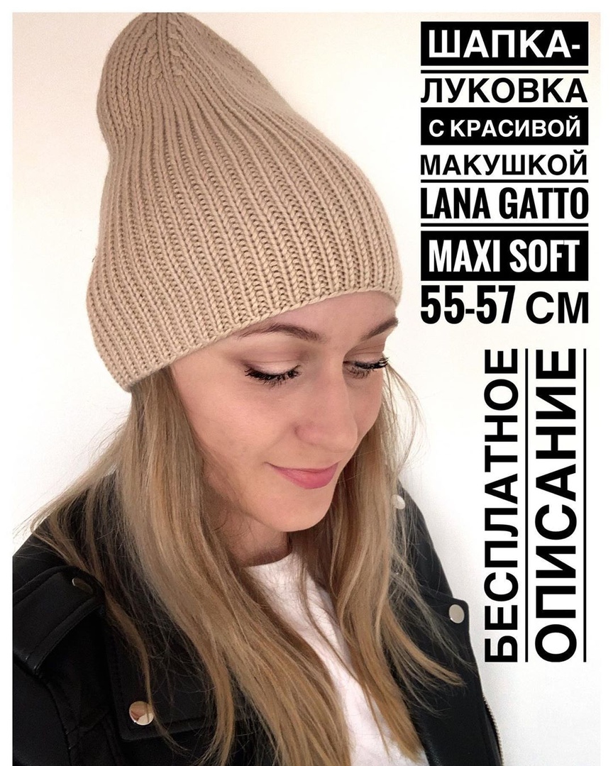 Шапка-бини с красивой макушкой из Lana Gatto MAXI soft 55-57 см