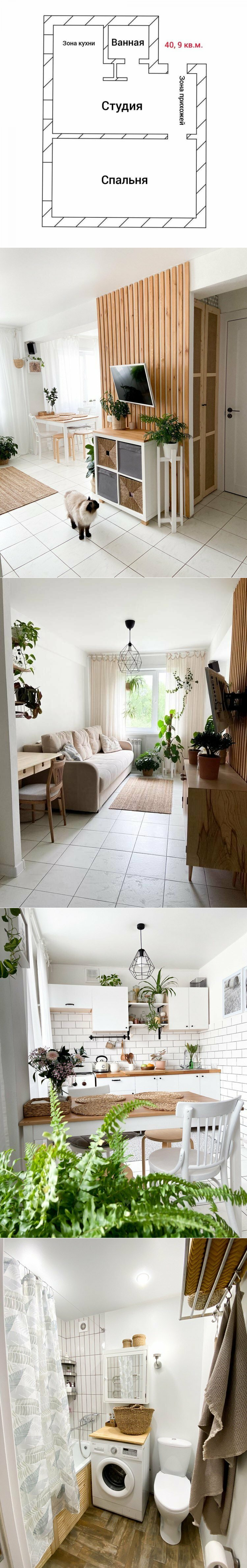 Белые стены, самодельная мебель и ИКЕА: как блогер оформила евродвушку 41 м² в «хрущёвке» для себя и детей | Филдс | Яндекс Дзен