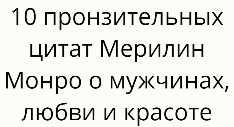 10 пронзительных цитат Мерилин Монро о мужчинах, любви и красоте Цитата ниже многое раскрывает о характере, судьбе и мире, в котором она жила. А в психологии появился термин «синдром Мерилин Монро». Он определяет невозможность быть счастливой. Норма Джин Бейкер (Мортенсон) родилась 1 июня 1926 года, а Мерилин Монро умерла 5 августа 1962 года. Обстоятельства кончины остались не ясны. Но она была и остается иконой 50-х […] Читай дальше на сайте. Жми подробнее ➡