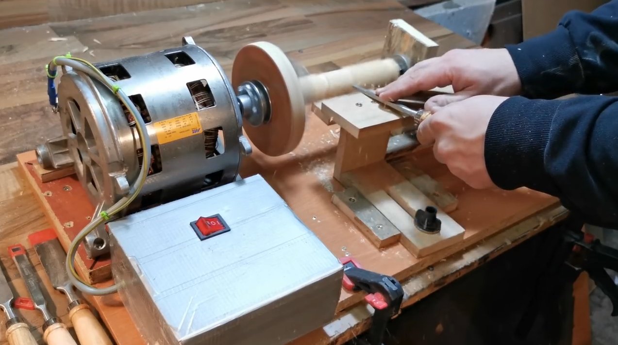 Мини-токарный станок из мотора от стиралки автомат Приветствую всех любителей помастерить, предлагаю к рассмотрению инструкцию по изготовлению небольшого токарного станочка, который автор собрал на основе мотора от стиральной машины автомат. Чтобы увеличить крутящий момент и снизить обороты, для такого мотора можно купить специальный контроллер.