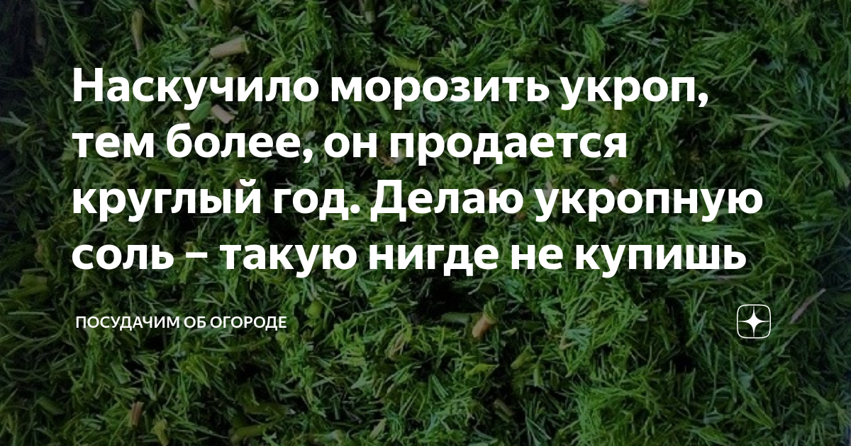 Наскучило морозить укроп, тем более, он продается круглый год. Делаю укропную соль – такую нигде не купишь Про этот рецепт мне рассказала в отпуске хозяйка квартиры, которую мы снимали в Лазаревском. Жители Краснодарского края многие заготовки на зиму делают непривычными для нас способами. Укропная соль – не единственной, что я подсмотрела на Кубани, но об этом в другой раз. В этой статье расскажу, как легко и просто заготовить укроп, не отправляя в морозилку. Плюсы такой ...