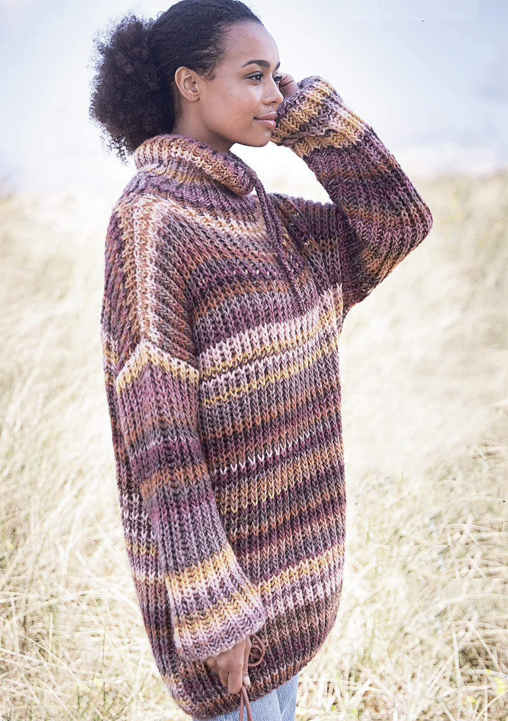 Свитер-оверсайз с завязкой в воротнике — схема вязания спицами с описанием на BurdaStyle.ru