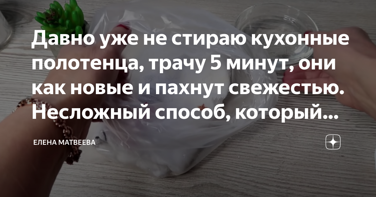 Давно уже не стираю кухонные полотенца, трачу 5 минут, они как новые и пахнут свежестью. Несложный способ, который выручает Друзья, привет! Любая хозяйка в процессе готовки не может обойтись без кухонных полотенец, но их проблема в том, они быстро загрязняются. Фруктовые пятна и жир быстро въедаются в ткань, поэтому стирка превращается в мучение. Никакая стиральная машина, порошок и гель не справляются с такими пятнами. Но у меня есть один проверенный метод, который букв...