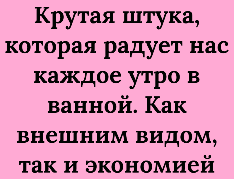 Крутая штука, которая радует нас каждое утро в ванной. Как внешним видом, так и экономией
