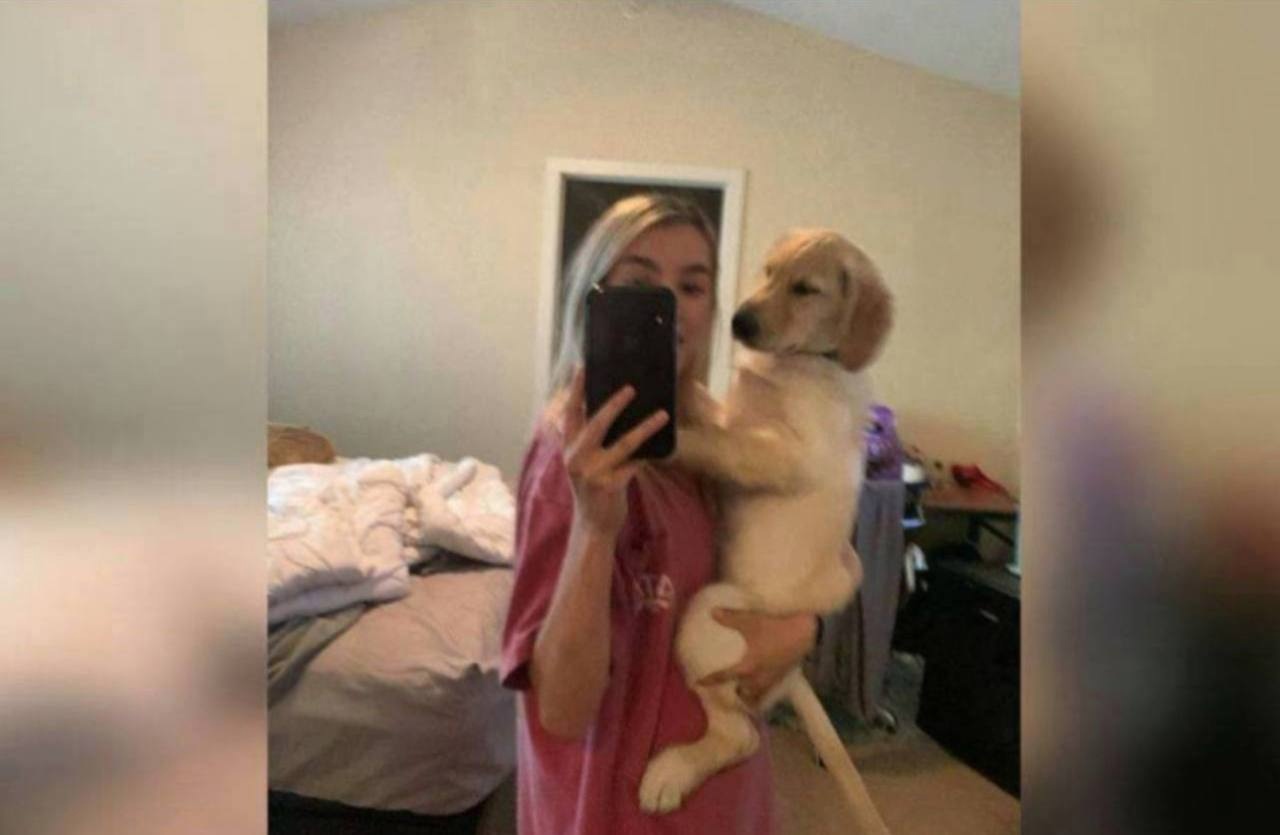 Если хорошо приглядеться, то сзади девушки в дверном проёме стоит мужчина, а собака принадлежит серийному убийце!