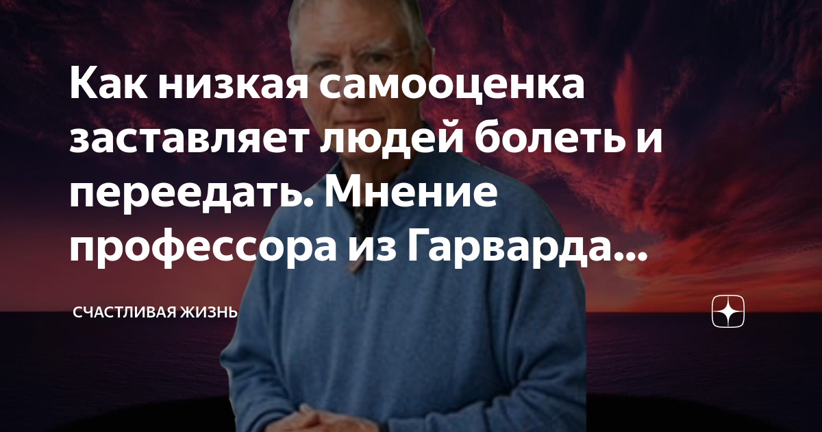 Как низкая самооценка заставляет людей болеть и переедать. Мнение профессора из Гарварда Роберта Энтони Профессор из Гарварда Роберт Энтони прославился на весь мир после выхода своей книги о повышении самооценки "Главные секреты абсолютной уверенности в себе". Книга оказалась настолько занимательной и полезной, что буквально стала настольной среди многих американских подростков и их родителей. Роберт Энтони написал более 10 книг, с 1940 по 1983 год был членом Гарвардской...
