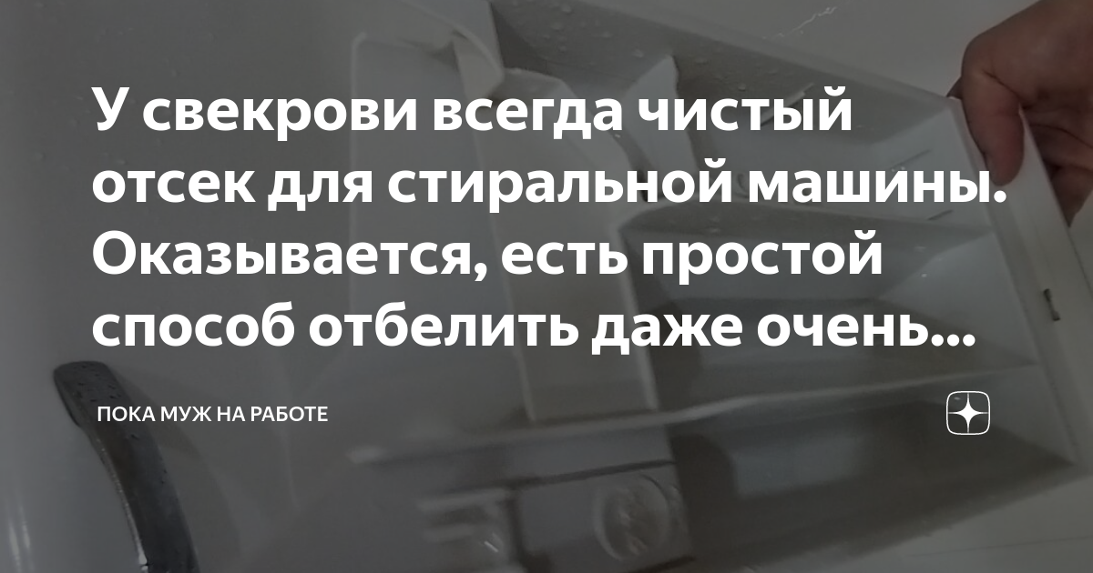 У свекрови всегда чистый отсек для стиральной машины. Оказывается, есть простой способ отбелить даже очень грязный У свекрови всегда чистый отсек для стиральной машины. Оказывается, есть простой способ отбелить даже очень грязный Всем привет! Сегодня расскажу вам эффективные методы очистки отсека для порошка стиральной машины. Раньше я думала, что отбелить пожелтевшие, старые предметы с застойными пятнами грязи - практически невозможно, и такие вещи можно только выкидывать...