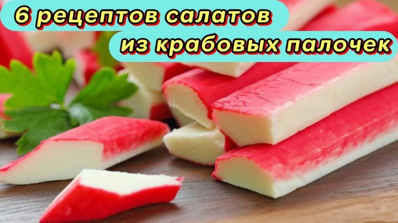 6 рецептов приготовления салатов из крабовых палочек Представляю Вашему внимания свои 6 видео рецептов приготовления простых и вкусных салата из крабовых палочек. Все салатики легко и просто готовятся, а получаются они красивыми и очень вкусными. Я надеюсь что Вам понравятся мои рецепты приготовления салатиков. Приятного Вам аппетита.1)...