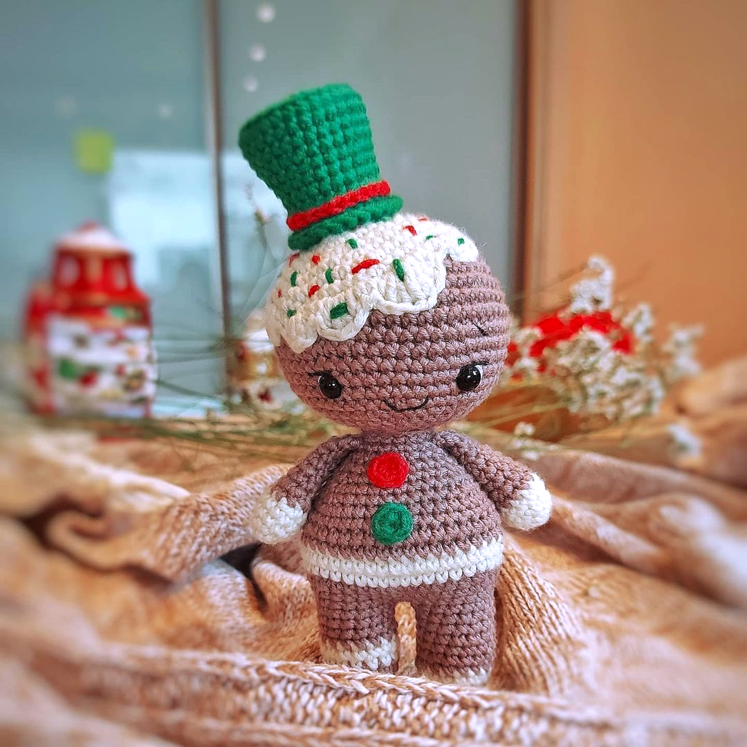 PDF Пряня крючком. FREE crochet pattern; Аmigurumi doll patterns. Амигуруми схемы и описания на русском. Вязаные игрушки и поделки своими руками #amimore - пряничный человечек, кукла, маленький пупс, куколка, Рождество, Новый год, печенье, печенька.