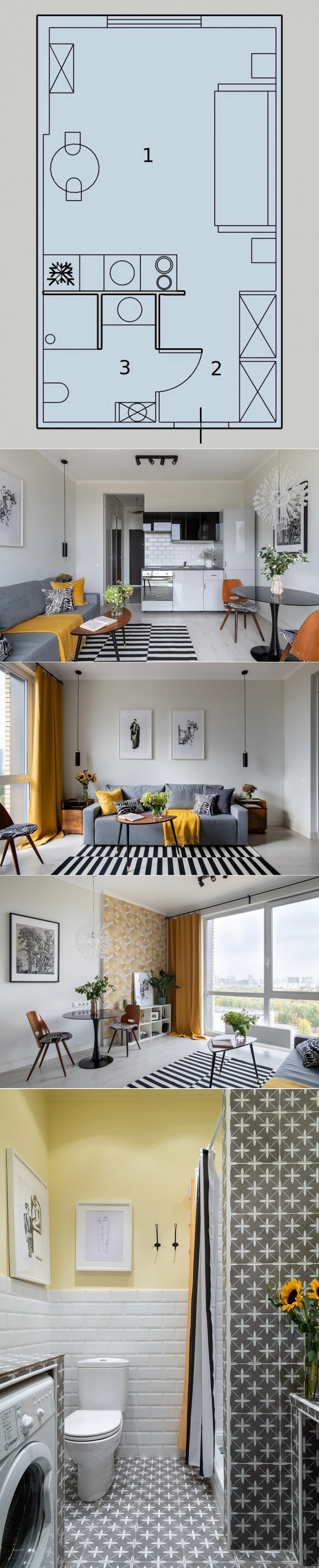 Как дизайнер оформила студию 25 м² для сдачи в аренду за 600 тысяч рублей: планировка до и после | Филдс | Яндекс Дзен