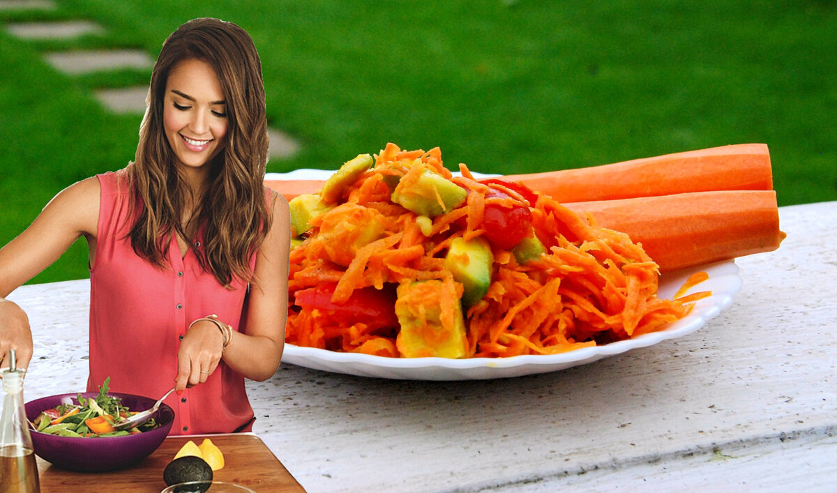 Морковка по-голливудски. Готовим любимый салат Джессики Альбы | КАФЕ-ШАФРАН | Пульс Mail.ru Рекомендую попробовать такое интересное сочетание овощей. Это очень простой и вкусный салат, который не нанесет вреда вашей фигуре.
