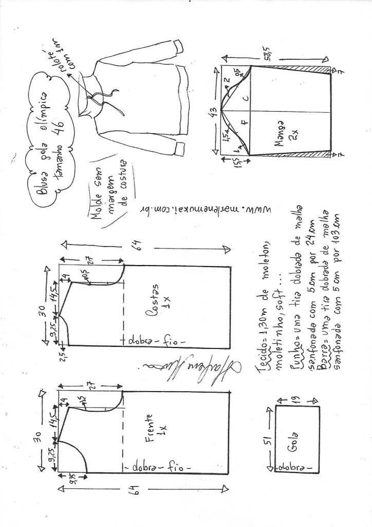 Blusa moletom gola olímpica | DIY - molde, corte e costura - Marlene Mukai #шить #шитьемое #шитьлегко #шитьедетям #шитьедлядетей #шитьеикрой #шитьемоехобби #шитье #выкройки #кройка #идеи #урокишитья #моделирование #sewing #patterns #рукоделие #handmade #sewinglessons