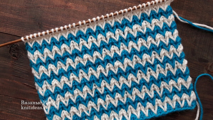 Двухцветные зигзаги спицами.